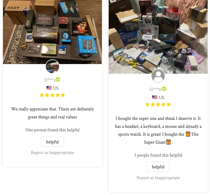 A: Mystery Boxes come in three different sizes - small, giant and super giant. The bigger the box, the greater the chance that you will receive the most valuable products. Good luck to everyone :)