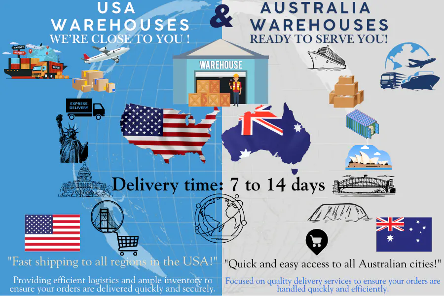 We have warehouses in the United Arab Emirates, Canada, the United States, the United Kingdom and Australia for same day delivery to your home at the earliest.